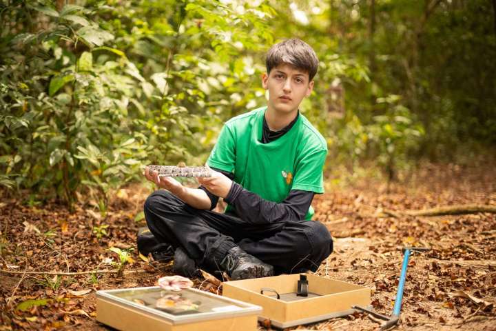 Tiene 12 años, es apasionado de la fotografía de naturalez, le encantan los réptiles y hace parte del grupo de observadores de aves y mariposas de la fundación.